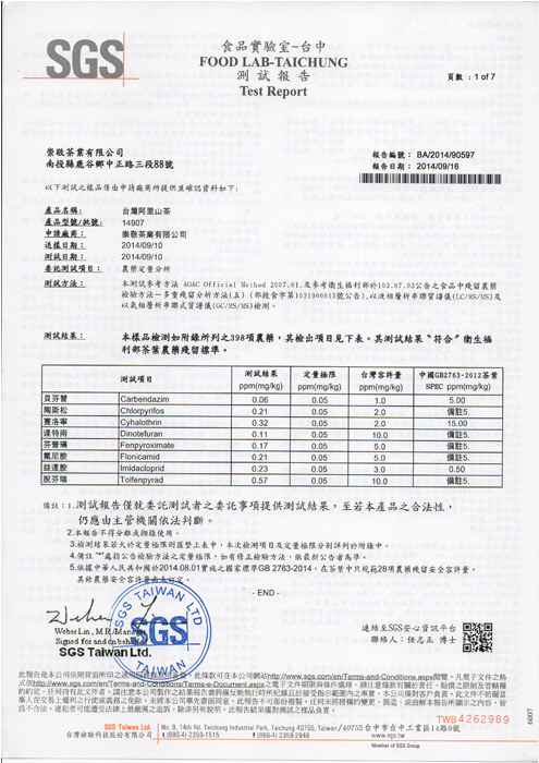2014年SGS檢驗報告 (可點圖放大)